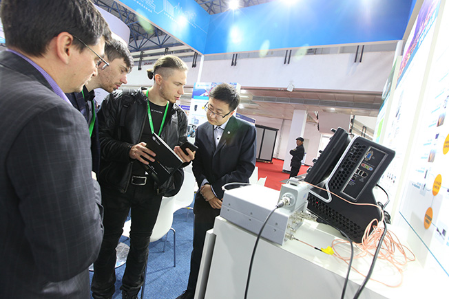技術(shù)人員為外國(guó)友商介紹便攜式網(wǎng)絡(luò)測(cè)試儀
