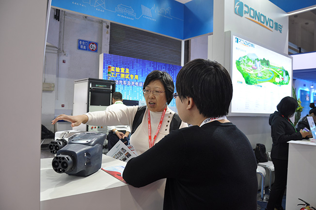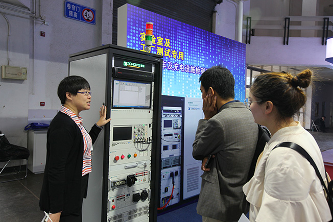 技術(shù)人員為客戶(hù)講解電動(dòng)汽車(chē)及充電設(shè)施檢測(cè)設(shè)備