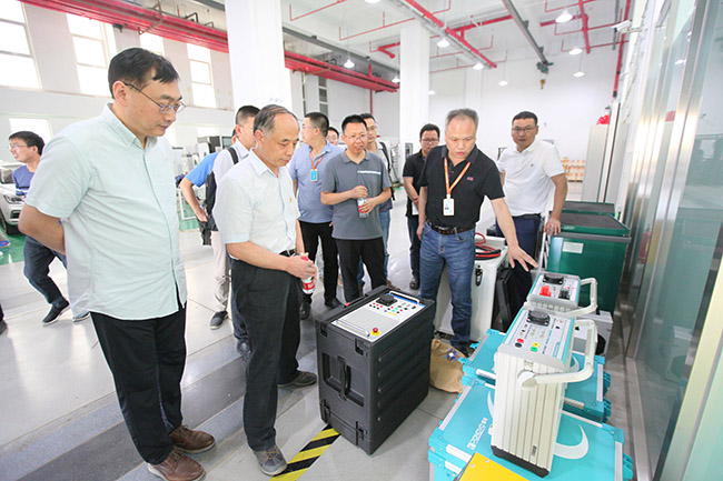 剛剛視察完實(shí)驗(yàn)室建設(shè)情況的國(guó)網(wǎng)電動(dòng)汽車(chē)服務(wù)有限公司副總經(jīng)理賈俊國(guó)觀看了現(xiàn)場(chǎng)測(cè)試。博電科技董事長(zhǎng)陳衛(wèi)向賈總介紹了博電科技在電動(dòng)汽車(chē)及充電設(shè)施檢測(cè)領(lǐng)域的產(chǎn)品情況。