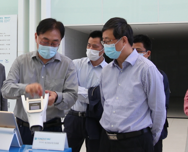 ▲滕樂天董事長詳細了解博電智能測試數(shù)據(jù)終端