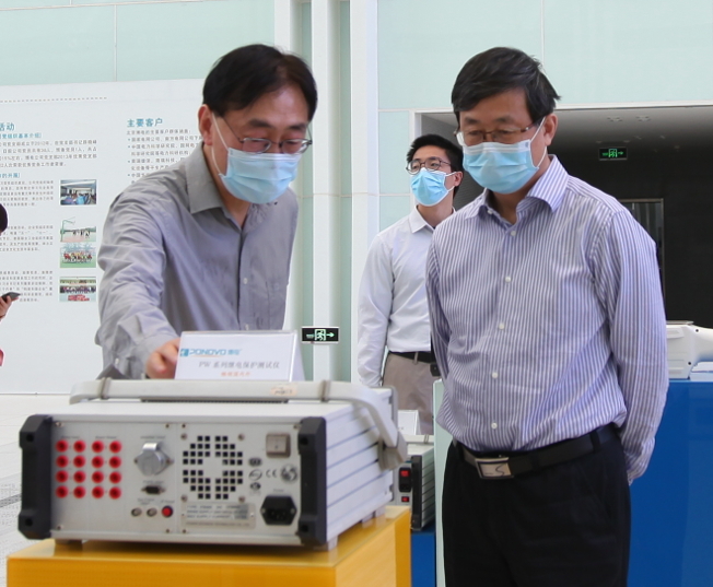 滕樂天董事長一行首先參觀了位于博電大廈大廳的展示中心。聯(lián)研院各位領(lǐng)導(dǎo)仔細查看了博電面向電動汽車及充電設(shè)施、大功率半導(dǎo)體檢測、智能電網(wǎng)檢測等領(lǐng)域勢的高精尖儀器設(shè)備,對博電自主創(chuàng)新、引領(lǐng)行業(yè)的優(yōu)秀產(chǎn)品給以極大的贊賞。