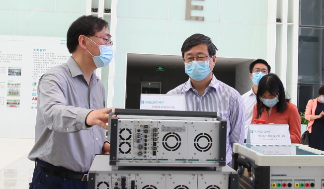 ▲陳總向滕樂天董事長一行介紹博電繼電保護測試儀