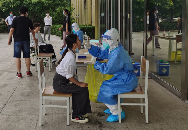 ▲依次進(jìn)行核酸檢測(cè)采樣