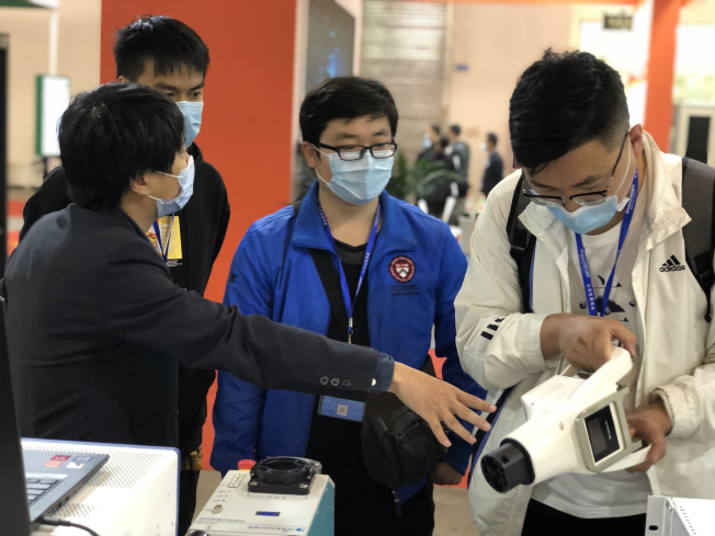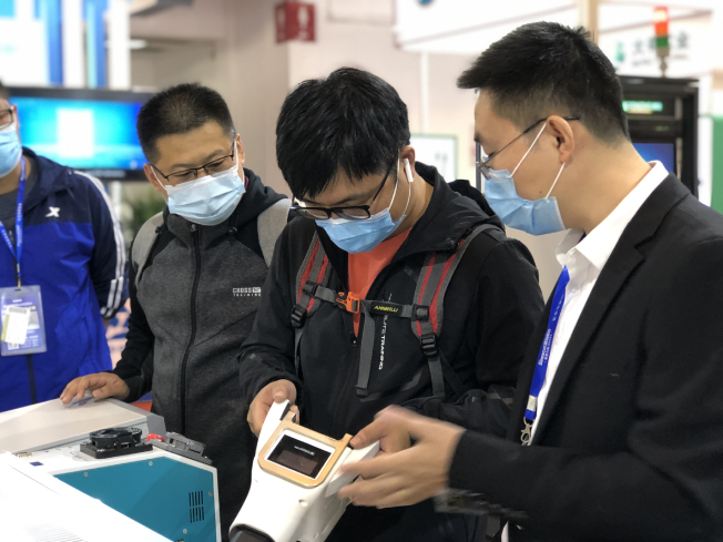 ▲專業(yè)觀眾詳細了解博電全球最便捷手持式充電監(jiān)測儀