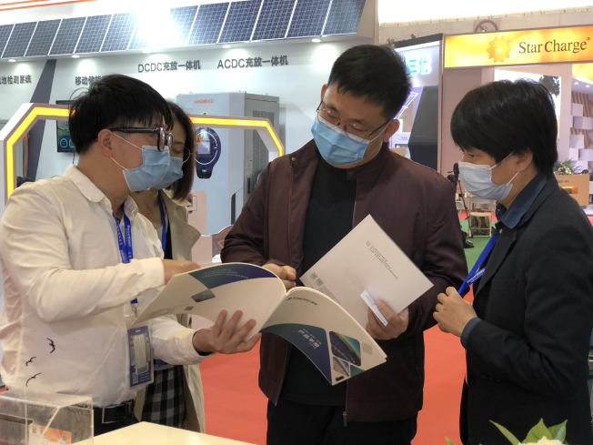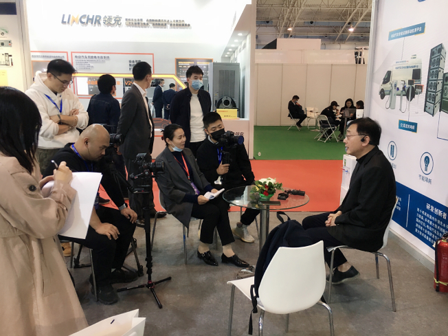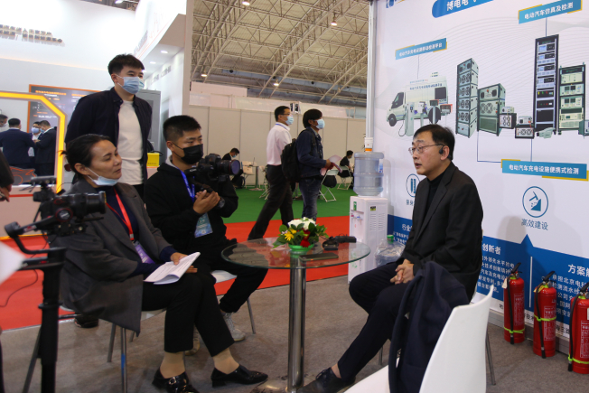 博電科技董事長兼總經(jīng)理陳衛(wèi)蒞臨展位參觀指導(dǎo)并接受《中國能源網(wǎng)》、《新能源汽車報》等媒體專訪。