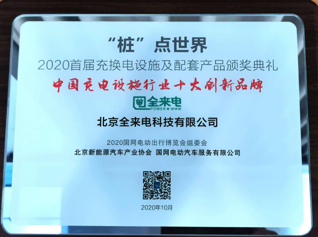 博電能源互聯(lián)網(wǎng)創(chuàng)新園園區(qū)孵化企業(yè)——北京全來電科技有限公司也斬獲大獎——“中國充電設(shè)施行業(yè)十大創(chuàng)新品牌”。