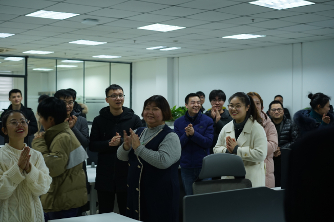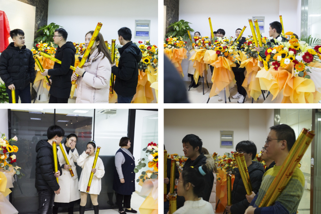 揭牌儀式現(xiàn)場興高采烈的員工們