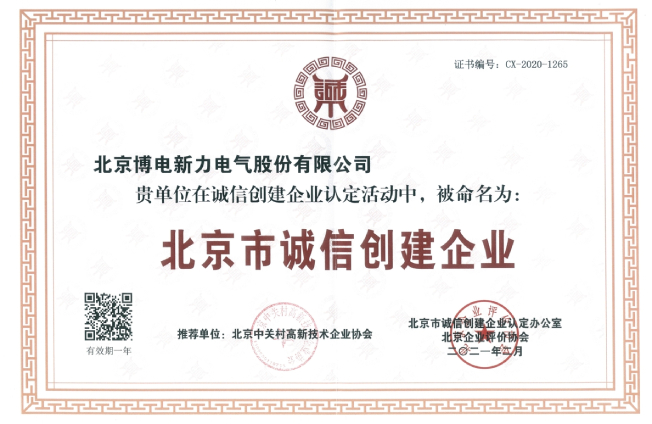 博電科技由北京北京中關(guān)村高新技術(shù)企業(yè)協(xié)會推薦,通過層層篩選,最終不負(fù)眾望,摘得“北京市誠信創(chuàng)建企業(yè)”稱號。