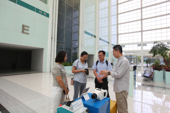 ▲參觀手持式電動汽車檢測儀
