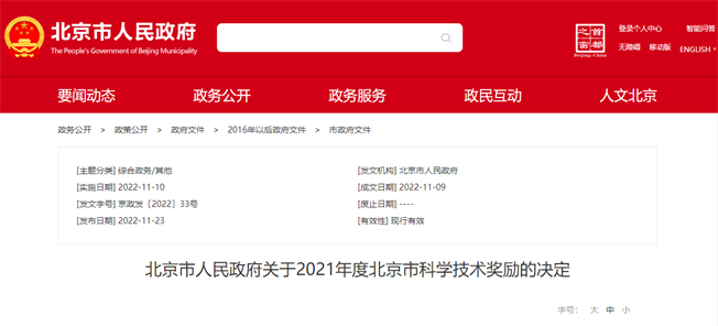 “北京市科學(xué)技術(shù)獎(jiǎng)”是北京市人民政府設(shè)立的獎(jiǎng)項(xiàng),其中項(xiàng)目獎(jiǎng)包含自然科學(xué)獎(jiǎng)、技術(shù)發(fā)明獎(jiǎng)、科學(xué)技術(shù)進(jìn)步獎(jiǎng);側(cè)重激勵(lì)關(guān)鍵核心技術(shù)創(chuàng)新方面取得突破、實(shí)現(xiàn)高技術(shù)成果落地轉(zhuǎn)化、推動(dòng)北京高質(zhì)量發(fā)展的成果,匯集了頂尖高校、科研院所等參與評(píng)定,是科技領(lǐng)域的權(quán)威性獎(jiǎng)項(xiàng)。2021年度項(xiàng)目獎(jiǎng)870份提名書中,最終通過(guò)選拔的科學(xué)技術(shù)進(jìn)步獎(jiǎng)僅有149份。