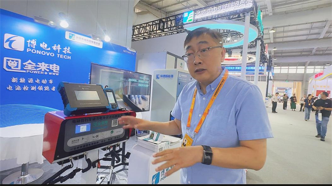 在2025服貿會展臺現(xiàn)場,博電科技的技術人員進行了生動的現(xiàn)場演示。一塊看似正常的電池,在連接到檢測設備后,設備屏幕立即顯示實時數(shù)據(jù),兩分鐘就生成了檢測報告,清晰標注了電池的安全狀態(tài)。