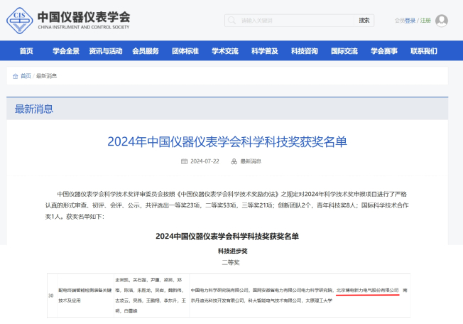 榮耀時刻 | 博電科技榮獲2024年中國儀器儀表學(xué)會科技進步獎二等獎