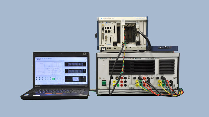 本測試系統(tǒng)用于測試電動汽車充電過程的互操作性和一致性實驗。NI的PXIe-1062Q作為測試主機,通過Labview運行國標或者IEC標準的測試邏輯。測試信號經過博電的模塊化功率測試平臺后,輸出到電動汽車的充電端口上,同時接收電動汽車的反饋來完成整個閉環(huán)測試。